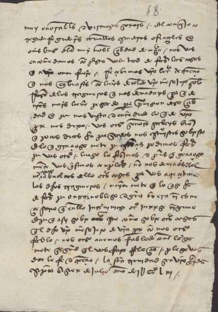 Minuta de una carta del concejo de Murcia al concejo de [Cartagena] sobre el abastecimiento de pescado.