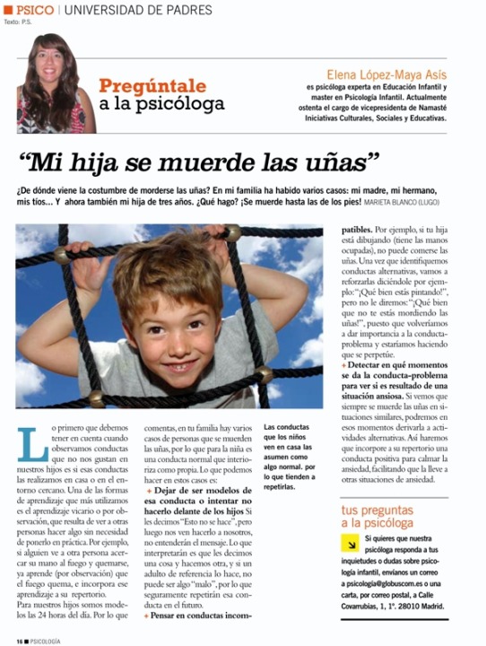La colaboración se centra en un consultorio bajo el título "Universidad para padres" en el que la Psicóloga Elena López-Maya Asís responde cuestiones de distintos lectores que escriben a la sección de la revista preguntando sobre temas de Psicología infantil.