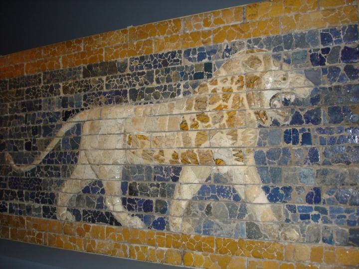 león en ladrillo esmaltado